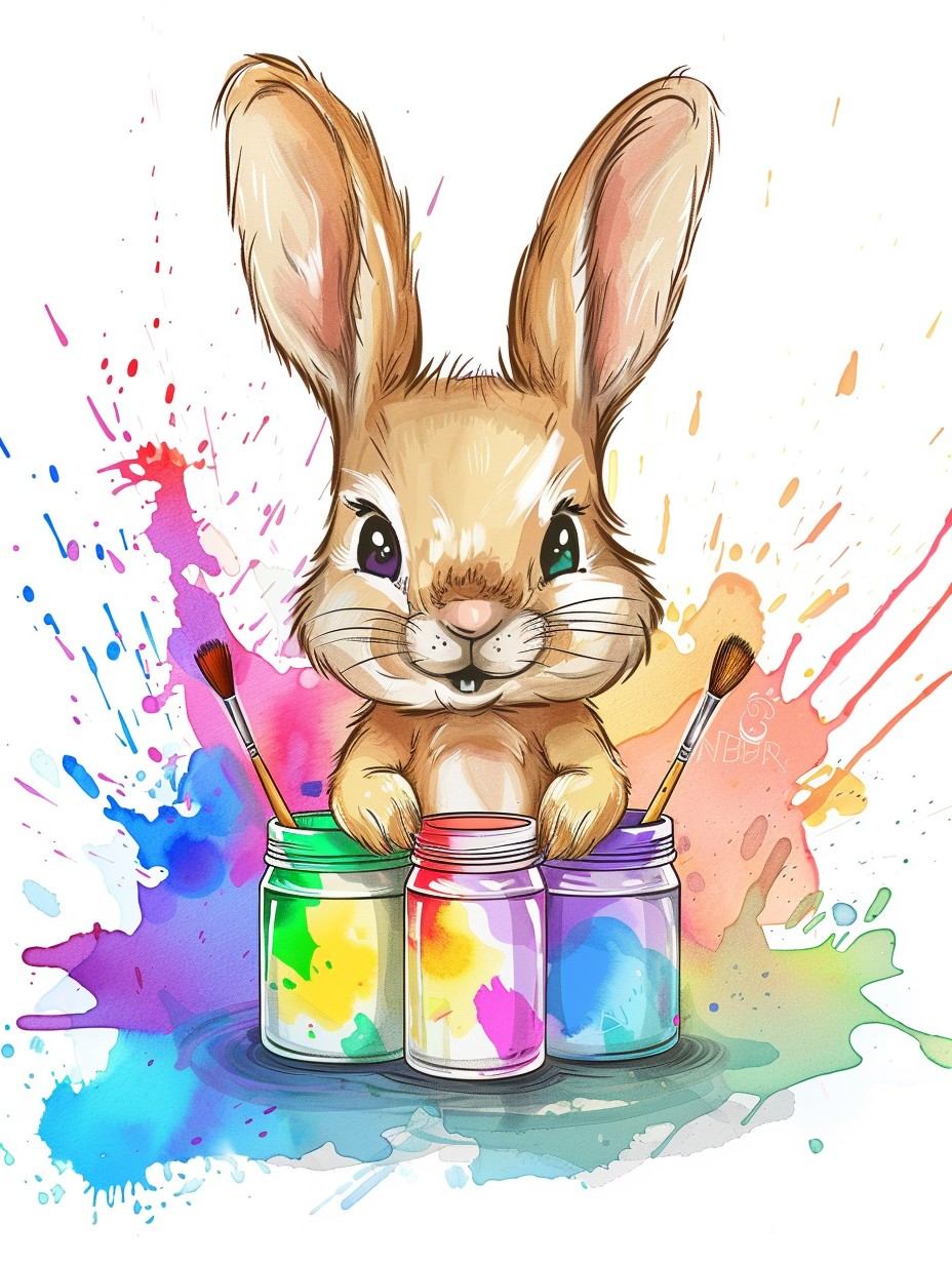 💠Each brilliant diamond brings to life the playful, paint-splattered world of this adorable bunny, capturing the vivid, rainbow hues of its paint jars and the joyful energy of its watercolor backdrop. 💠