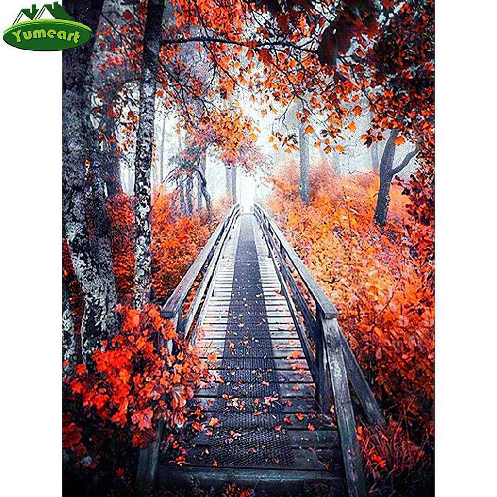 Wooden Bridge Over Blooming Trees
