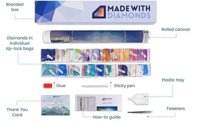 Our Diamond Painting Kits feature exclusive artworks that let you recreate stunning designs with the radiant brilliance of diamonds. Each gem you place brings you closer to crafting an elegant, timeless masterpiece that truly inspires awe.